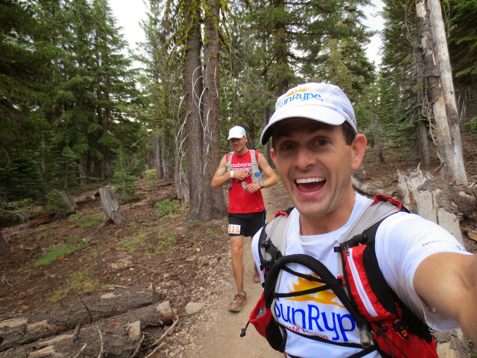 Here is Dad leaving to climb the same Diamond Peak hill from earlier in the day with Jim Kepfer, his pacer for the last 20 miles. Dad met Jim through a mutual friend on Facebook, but didn't see him or talk in person with him until mile 80 of the TRT100. There aren't as many pictures at night of course. Jim was also a very good pacer -- he kept up a good conversation and had a timer to help Dad remember to keep eating every 30 minutes. He is a band teacher in Auburn, CA and loves to pace for ultra races. He has run a few ultras himself, but says he prefers pacing.